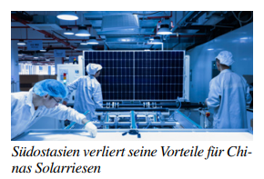Viele Unternehmen haben die Produktion im Namen von „Anlagenmodernisierungen“ oder „Wartungsarbeiten“ eingestellt oder ihre Mitarbeiter entlassen, nachdem das US-Handelsministerium im Mai eine Antidumping- und Antisubventionsuntersuchung gegen kristalline Silizium-Photovoltaikzellen aus Kambodscha, Malaysia, Thailand und Vietnam eingeleitet hatte. Washington geht damit auf die Beschwerde lokaler Solarunternehmen vor, die behaupten, dass die Volksrepublik mithilfe von Produktionsverlagerungen nach Südostasien Zölle zu umgeht.